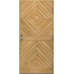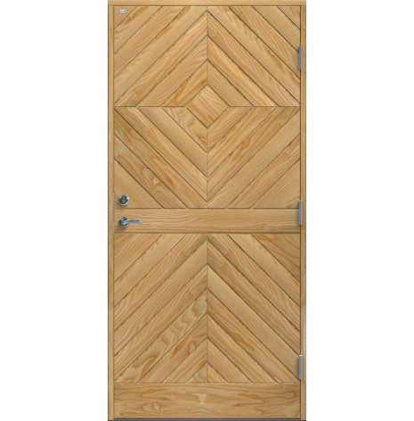 Karin Furu är en yttterdörr i traditionell stil med diagonal panel i form av spårfräst dekor. Insidan är slät, men går att få dekorerad som utsidan.