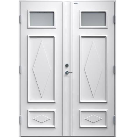 Britta glas är en parytterdörr i klassisk stil dekorerad med listverk och dörrspeglar. Liggande klarglas upptill. Insidan är slät, men går att få dekorerad som utsidan. Dörr och karm levereras vit NCS S 0502-Y som standard.