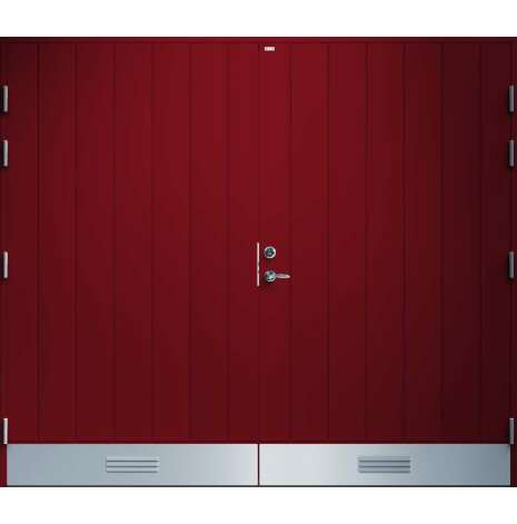 Dekorspårad garagedörr i traditionell stil som finns i flera utföranden. Som standard är dörren Vit (NCS S0502-Y).