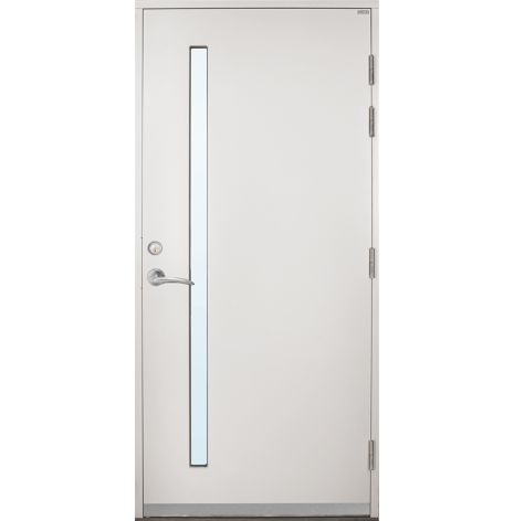 Dörrarna i denna serie är tillverkade med samma kraftiga stomme som i dom andra serierna. Karm med tröskel i hårdträ och slitskena, 4 justerbara gångjärn med bakkantssäkring och dörrarna målade med 3 lager färg för bästa finish och slitstyrka. Standard låskista är Dorma DL 9 1925 motsvarande funktion som Assa 2500 med bortasäkring (hakregellås).