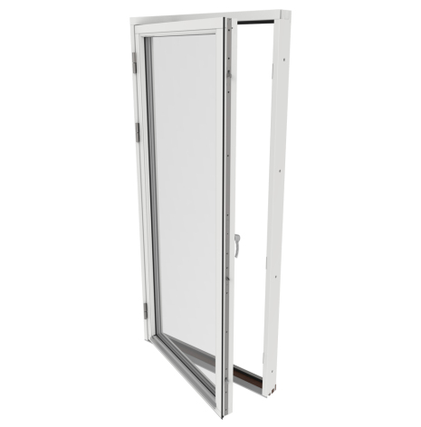 Outline Helglasad Fönsterdörr 3-glas Vitmålad trä in och utsida.