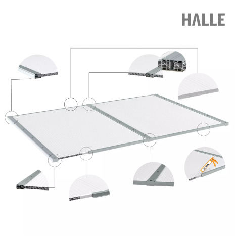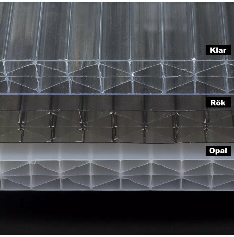 Skyddsyta: Takplasten har UV-skydd. Var noga att montera taken rätt. Läs instruktionen på takskivorna och behåll skyddsplasten på under monteringen för att inte skada skivorna.