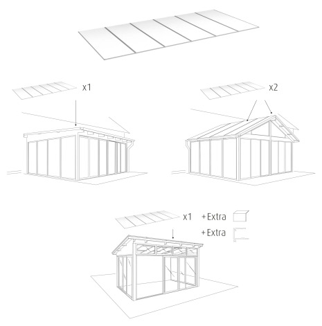 En taksats med 16 mm kanalplasttak är lämpligt att använda till skärmtak till carporten, den öppna uteplatsen eller uterummet som används från tidig vår till sen höst.
