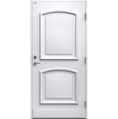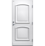 Anita tät är en ytterdörr utan glas i klassisk stil med utvändigt listverk. Insidan är slät, men går att få dekorerad som utsidan. Dörr och karm levereras vit NCS S 0502-Y som standard.