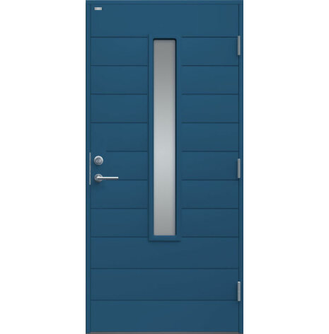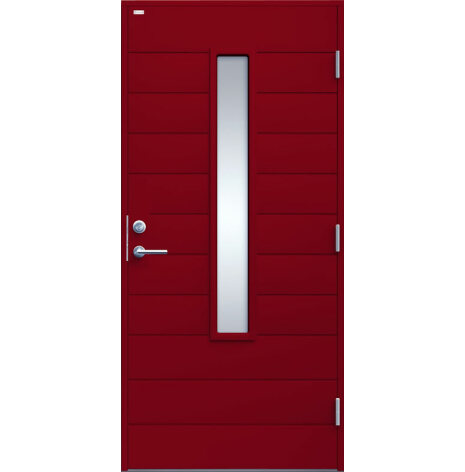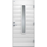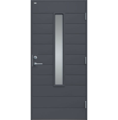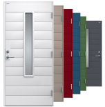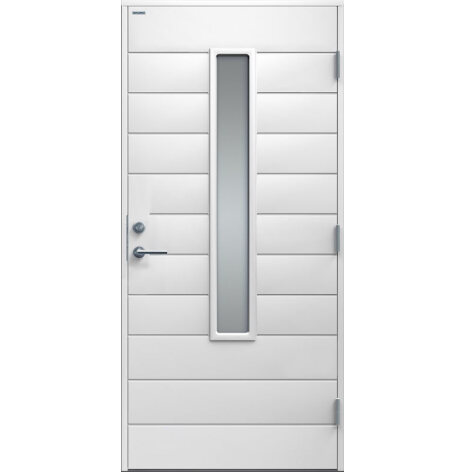 Clara är en ytterdörr i modern stil med stående klarglas och liggande dekor. Välj mellan ek, konstteak eller valfri kulör. Insidan är slät, men går att få dekorerad som utsidan. Dörr och karm levereras vit NCS S 0502-Y som standard.