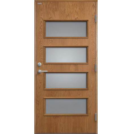 Ebba Ek klarglas är en elegant ytterdörr helt utan dekor på in och utsida. Dörren har fyra lite större, liggande klarglas som standard.