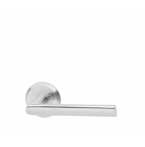Dörrhandtag av rostfritt stål med dubbelverkande returfjäder avsett för ytterdörr med modullåskista. Passar till dörrtjocklek 38-70 mm. Utsprång 70 mm.