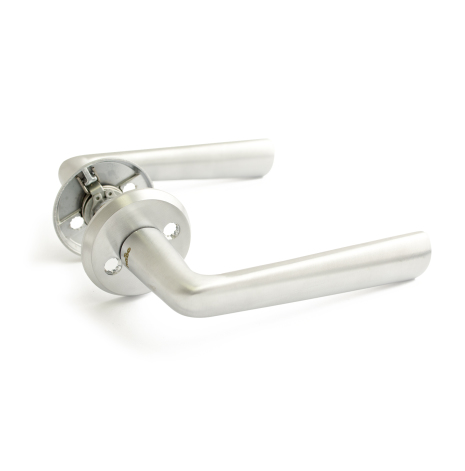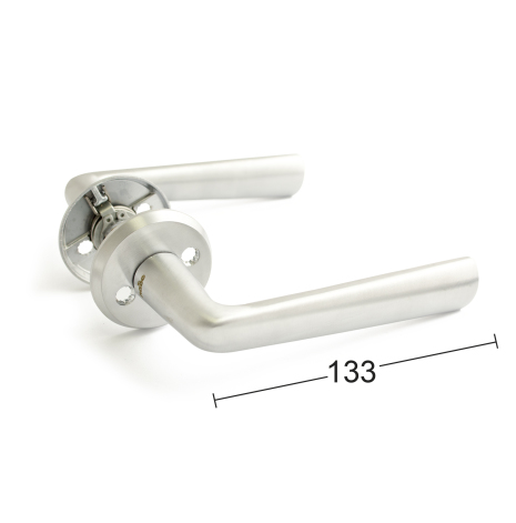 Dörrhandtag av mässing med dubbelverkande returfjäder avsett för ytterdörr med modullåskista. Passar till dörrtjocklek 38-70 mm. Utsprång 60 mm.