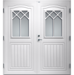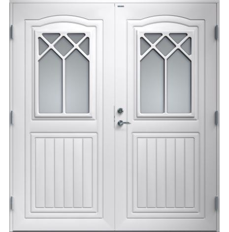 Linnea är en parytterdörr i traditionell stil och klarglas med karakteristiska dekorspröjs. Dörr och karm levereras vit NCS S 0502-Y som standard.