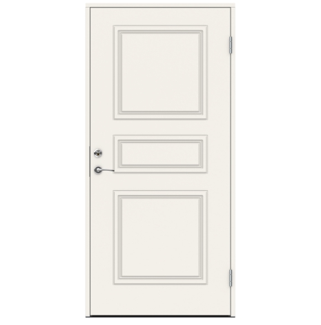 Puccini har dekorlister på utsidan och är spårfräst på insidan. Karm och Dörrblad målade i NCS S0502-Y som standard.