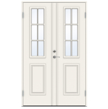 Smetana har dekorlister på utsidan och är spårfräst på insidan. Karm och Dörrblad målade i NCS S0502-Y som standard.