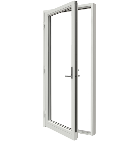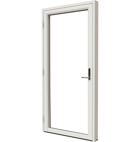 Helglasad fönsterdörr Aluminium från NorDans Serie NTech. Dörren är vitmålad i NCS S 0502-Y som standard.