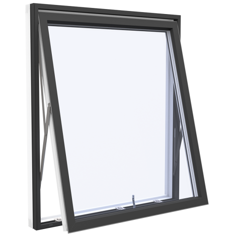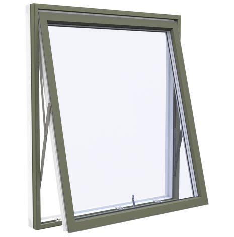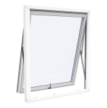 Toppstyrt fönster som kan öppnas 45 grader utåt. Beslagen tål en bågvikt på upp till 60kg och är dolda från utsidan för ett stilrent och estetiskt intryck. Fönstret har ett fast vädringsläge och en öppningsbegränsning (barnspärr). Välj mått och utseende på ditt fönster som exempelvis spröjs, rak profil eller antikprofil för mer klassiskt utseende.