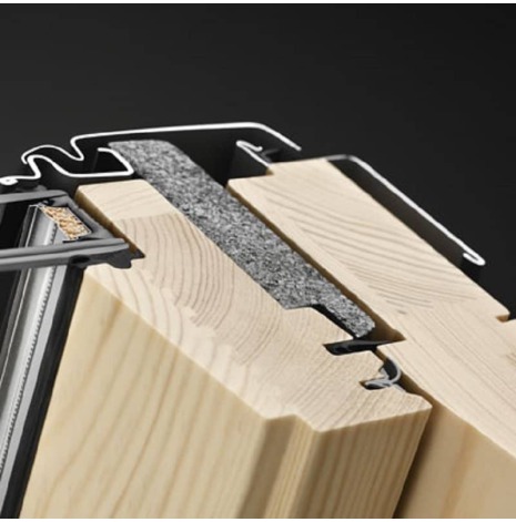 Velux takfönsterpaket SOLO-2 är ett system där fönster och samtliga installationsprodukter för utsidan ingår som standard. (Grå aluminium RAL 7043) I paketet ingår även en diffusionskrage för insidan.