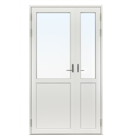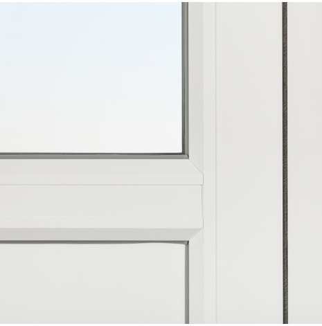 Dessa dörrar har en glasruta upptill med bröstning och isolerad fyllning i underkant. Det gör att glasrutans nedre kant bör linjera med fönster som sitter i anslutning till dörren. Du kan därmed välja om bröstningen ska matcha med fasta eller öppningsbara fönster. Har du t.ex. ett fast fönster med Modulhöjd 13 (=128 cm) brevid dörren väljer du Fast 13 som bröstning osv..